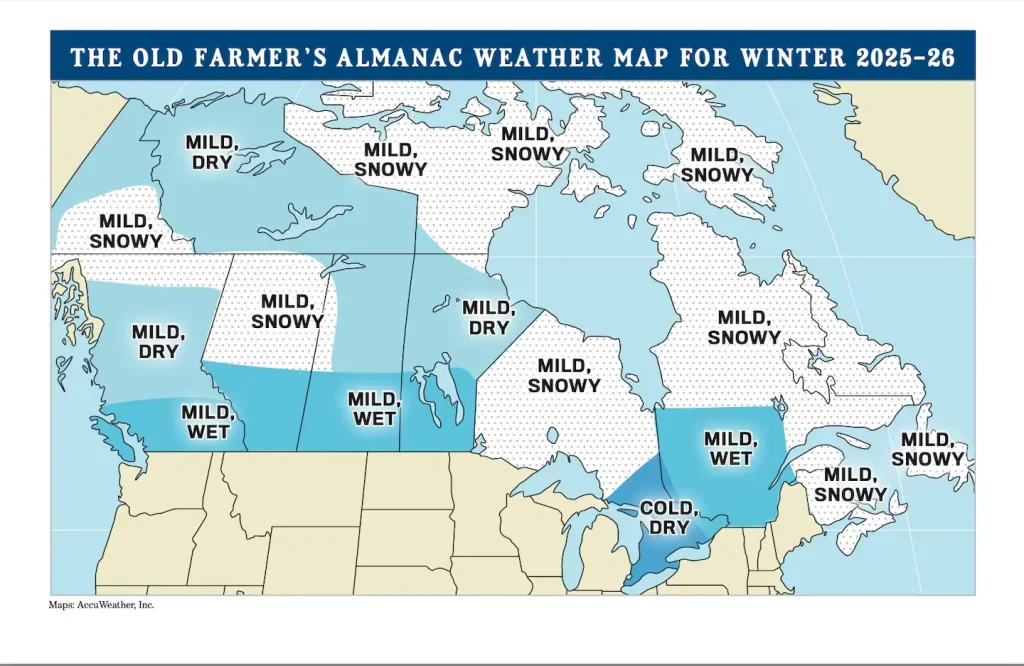 پیشبینی زمستان ۲۰۲۵-۲۰۲۶ کانادا توسط «آلمنک کشاورز قدیمی»