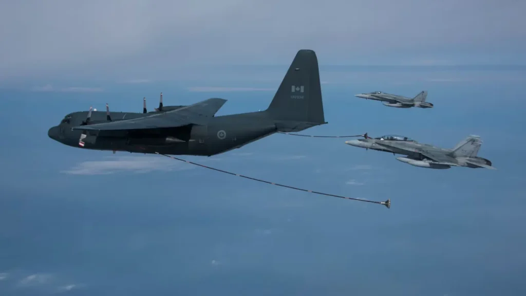 یک هواپیمای هرکولس در حال سوخترسانی به دو جنگنده CF-18 هورنت در تاریخ ۲۶ مه ۲۰۱۵. (عکس: آرشیو ارتش – سرجوخه آرتور آرک) جنگندههای کانادایی پیش از آغاز رزمایشهای چندملیتی ششهفتهای در …